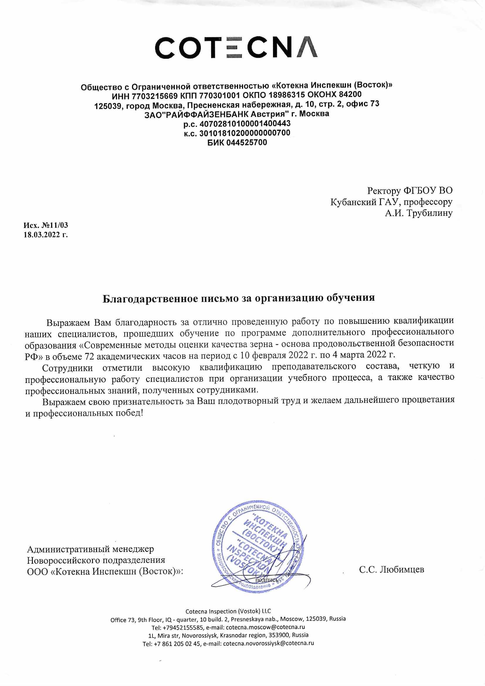 ООО "Котекна Инспекшн (Восток)"